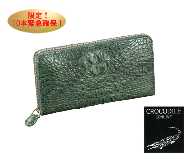 【限定10点】クロコダイル本皮革(クラウン付き)ラウンドウオレット《グリーン》(26-0803)